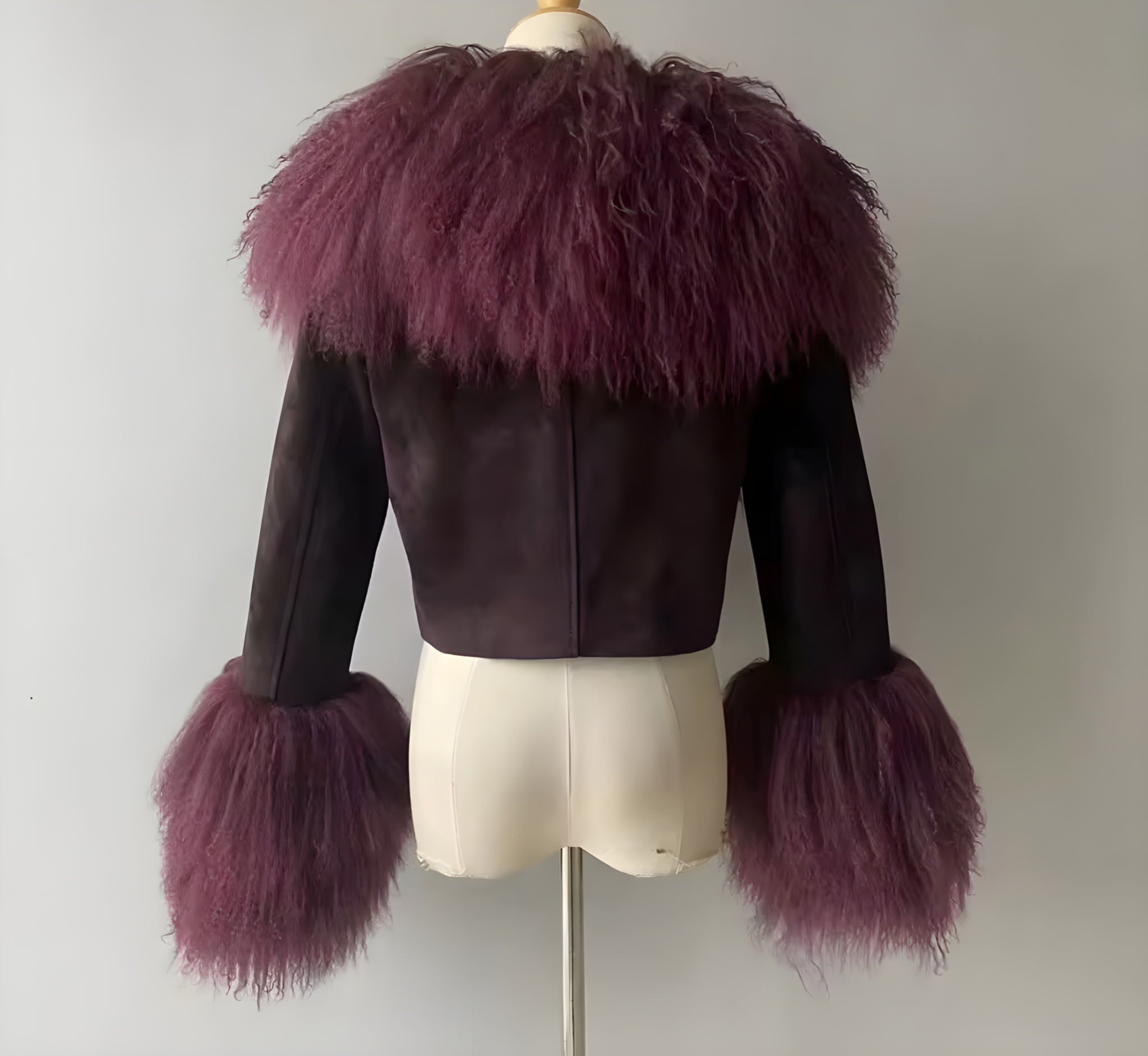 Experience true luxury with the Mongolian Mirage Coat, crafted from 100% real suede and genuine Mongolian furfor a rich, high-end finish. This statement piece features a dramatic, voluminous collar and oversized cuffs that bring warmth, texture, and runway-level style to any outfit.